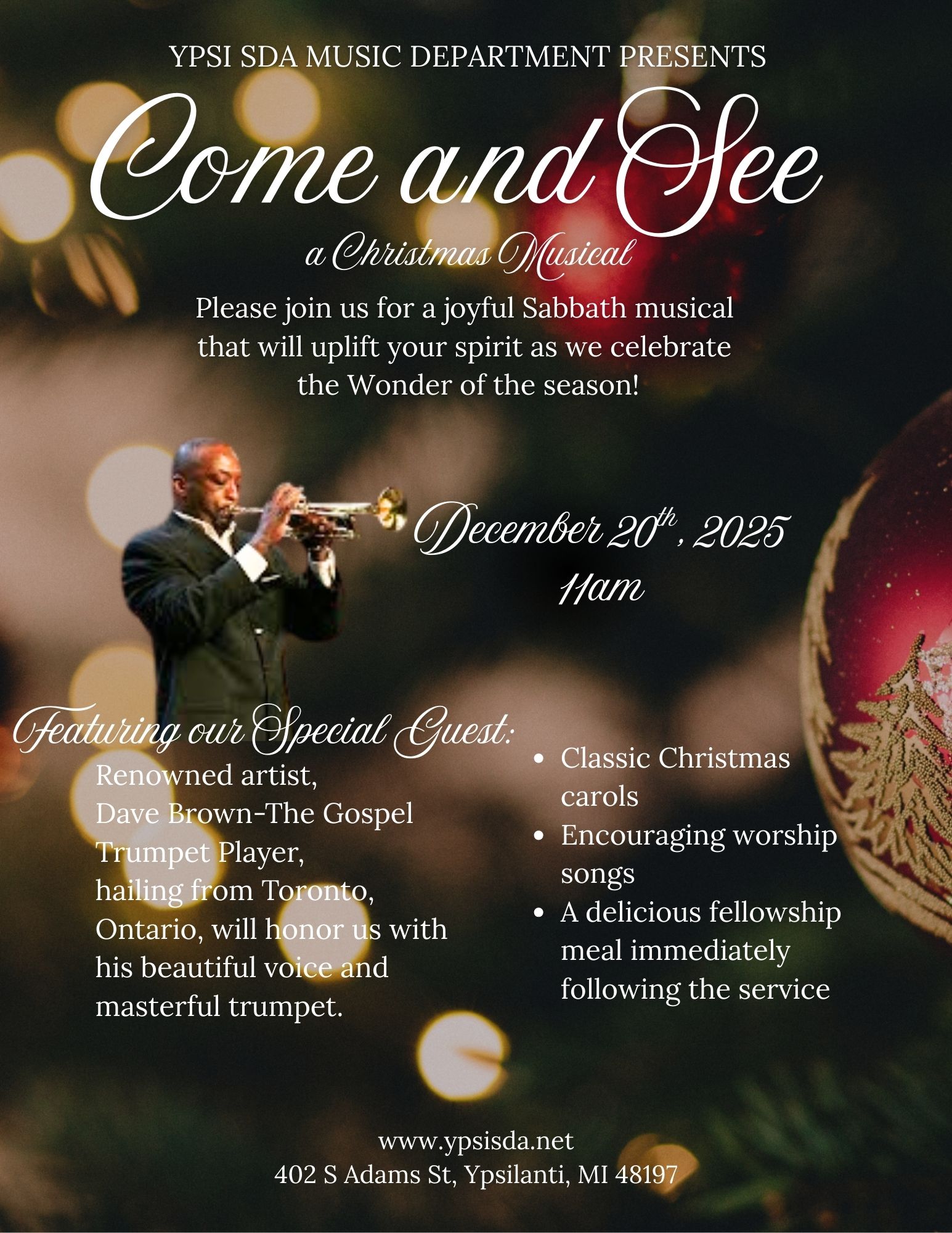 We are a Seventh-day Adventist church congregation that follows the Bible. Please join us for worship! Ypsilanti Seventh-day Adventist Church 402 S. Adams St Ypsilanti, MI 48197 734-482-3373 info@ypsisda.net Our worship services are held on Saturdays: 9:30am Saturday Bible Study For Adults Via ZOOM and In-Person Meeting ID: 969 3598 7552 Passcode: 759759 Phone In: 312-626-6799 >> Join Saturday 9:30am Bible Study 9:30am Bible Study for Kids For Kids In-Person 11am for Worship Service For The Hearing Impaired Join Our Sat 11am Church Service via ZOOM >> Here Meeting ID: 969 3598 7552 Passcode: 759759 Prayer Meetings on Wednesdays 12pm via Phone line Online Only Call: 540-792-0192 Access Code: 950 198 # 7pm via ZOOM Online Only Meeting ID: 956 7457 8833 Passcode: 335335 Call: 312-626-6799 >> Join Wed 7pm Prayer Meeting Quick Links